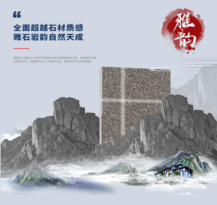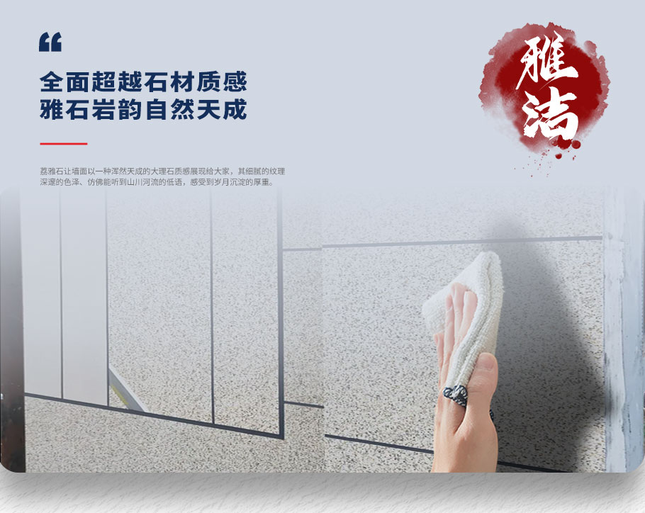 甄選高溫煅燒工藝彩砂搭配高端硅丙乳液,讓每一面墻面都仿佛蘊(yùn)含著大理石的山川韻味。讓家的墻面不僅是視覺上的享受,讓人凝視間油然而生對(duì)外墻大理石之美的贊嘆;更讓墻面似經(jīng)過歲月的雕琢,每一處紋理都是自然賦予的靈魂饋贈(zèng)。讓家不再單調(diào),賦予生機(jī)與承載溫馨的家庭篇章。